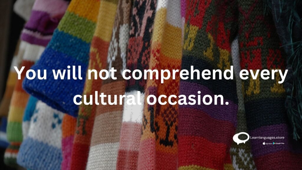 - You will not comprehend every cultural occasion.